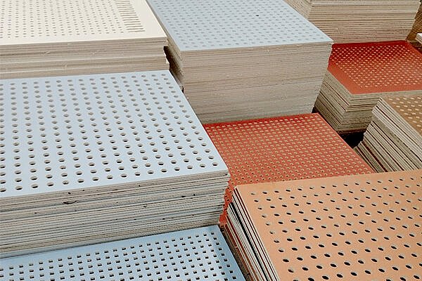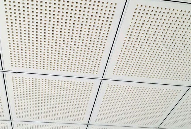 Delikli Tavan Döşemeleri, ticari ızgara tavanlarda akustik kontrol için üstün ses emilimi sağlayan vinil yüzlü alçıpan karolardır .
