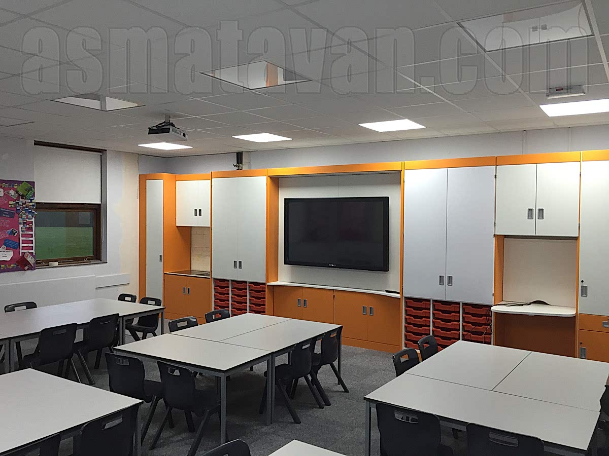 Ofisler, mağazalar, büyük alışveriş alanları, okullar, oteller ve hastaneler: ayırt edici özelliği, taşıyıcı sistemi ile aydınlatma armatürleri , hava...